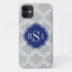 Este azulejo chic, moderno, moderno, marroquino inspirou um padrão de latência em cinzas leves e branco apresenta um modelo real e personalizável para suas próprias letras iniciais personalizadas de monograma. Um presente legal e pensativo para meninas ou senhoras que amam padrões mod com um toque pessoal.