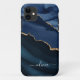 Estojo de Telefone com Monograma de Ágata em Geodo Azul-Marinho e Dourado. Belo e Elegante Nome em Estilo de Letra Script. Este é o presente perfeito para o 16º, 13º, 15º, 16º, 18º, 21º, 30º, 40º, 50º, 60º, 70º, 80º, 90º, 100º aniversário, casamento, chá de noiva, aniversário de casamento, chá de bebê, formatura ou festa de despedida de solteira para alguém que decora seu quarto em estilo chique e moderno.
