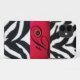 Elegante, elegante, design único e colorido; padrão de pele de zebra selvagem listrada com uma pedra vermelha brilhante de pedra preciosa rubi.Você pode mover ou redimensionar a pedra preciosa para personalizar com suas iniciais e seu próprio texto.
