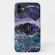 Girly Luxury Purple & Teal Marble Agate Glitter - Letra Monograma iPhone 11 Case.