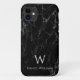 Capa Para iPhone 11 Monograma de Mármore Preto Nome Branco Moderno Ele