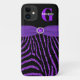 Padrão de faixa de impressão de zebra preto e roxo, preto e roxo, monogramado, com o case-Mate Apple iPhone 11 com fita IMPRESSA e broche de joia IMPRESSA. Personalize-o para adicionar seu nome, inicial ou outro texto. Se precisar de assistência, envie um email para niteowlstudio@gmail.com.