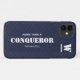 CAPA DE TELEFONE CRISTÃ motivacional na moda com o lembrete de que o amor dos Cristos para nós nos faz mais do que conquistadores. O design mostra um fundo azul-da-meia-noite com 'CONQUEROR' em um padrão em azul de córnfo. O texto principal diz MAIS DO QUE UM CONQUEROR, que se baseia nos romanos 8:37. Há também um MONOGRAM personalizável no canto, que é sublinhado. Um excelente presente para aniversários e Natal. Especialmente adequado para Dia de os pais ou como presente para encorajar e abençoar uma pessoa especial. O texto em primeiro plano é PERSONALIZÁVEL, portanto, você altera o texto' ou a referência de script pode ser substituída por um nome, se desejar. Parte da Coleção de DIAS DE OS PAIS em Designs Bereanos.