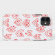 Esta capa de telefone tem um design moderno do Namorados do século médio de labirintos vermelhos dispersos num campo de branco.