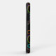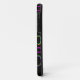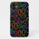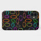 Essa capa de telefone tem um design geométrico de três ovais em cores neonatais espalhados em um campo de preto.