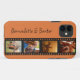 Capa de telefone de Cavalo de Laranja Queimada Personalizada e de Película Vintage: personalize esta capa de telefone laranja queimada com inspiração retrorreflectora com quatro fotos carinhadas dentro a vintage style e seu nome abaixo. Mostre seu amor por cavalos e desfrute de um toque de elegância vintage.