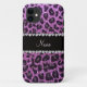 Nome personalizado moderno e moderno, personalizado pastel roxo, padrão de manchas-leopardo-roxas (impressão animal) com uma faixa negra de diamantes (não diamantes reais) com corações e pontos personalizados com seu nome, presentes ou presentes monogramas ou suas iniciais. Bonito ideias de presentes impressas em leopardo.