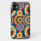 Essa capa de telefone tem um design Bauhaus de diferentes grupos de círculos concêntricos em cores dos anos 1970.