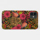 Folheto desenhado à mão, constituído por lotas, dália e flores crisântemas, bagas diversas, folhas e insetos