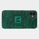 Adicione a sua inicial para personalizar esta capa de telefone esmeralda verde monogramada. Um monograma quadrado simples de na moda fica sobre um padrão foliar botânico preto.