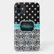 Capa Para iPhone 11 Padrão de Bolinhas de Damask Monograma Azul Brilha