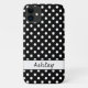 Este bonitinho caso iPhone 11 personalizado apresenta um padrão de bolinhas preto e branco e o nome de sua escolha.