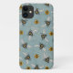 Proteja o seu telefone com estilo com este belo caso com abelhas de mel desenhadas à mão a zunir-se em torno de delicadas florescências de margarida contra um fundo azul francês.