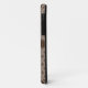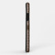 Capa de iPhone com padrão geométrico marrom e bege moderno. O texto pode ser personalizado.