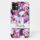 Capa de smartphone com monograma elegante e único para senhoras ou meninas com um emblema de monograma que você pode personalizar online com qualquer nome ou iniciais de monograma e um padrão abstrato colorido combinado com folhas de palmeira