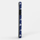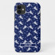 Esta capa de telefone personalizada para caipiras apresenta um padrão completo de caiaques em caiaques em peixes saltadores brancos e azuis claros contra uma pessoa azul marinho. Há um local para adicionar um nome ou outro texto.
