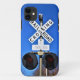Essa capa de telefone com um mastro de travessia da ferrovia com um sino mecânico clássico é perfeita para quem tem interesse em ferrovia.