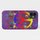 A paz da palavra, o sinal de paz 3-D Vibrantly colorido retro moderno do falso do inclinação do arco-íris, os pássaros & um fundo colorido do pintura-respingo do grunge do design floral e do abstrato da borboleta do azul & da lavanda. Feito como o falso tradicional dos trabalhos de arte, então terminada & dada texturas metálicas, usando Adobe Photoshop CS2. Trabalhos de arte abstratos opcionais, customizáveis da textura do fundo