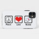 Três símbolos cada um em um quadrado preto arredondado. O sinal de paz, um coração vermelho, e um símbolo para nutrir o IE. as enfermeiras tampam… dizem a "paz, amam, nutrem"… tudo em uma pia batismal preta. Presente agradável para algum enfermeira ou estudante dos cuidados. Escolha seu próprio estilo da capa de telefone.