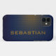 Personalize o caso do iPhone 11 com padrão de fibra de carbono azul colorida moderna de ocre azul. Clique no botão Personalizar para adicionar seu nome real. Clique no botão Personalizar para adicionar seu próprio texto e fotos para criar um único design.