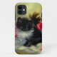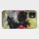 capas de iphone com um gatinho preto e branco! Esse tuxedo fofo se posou entre as flores vermelhas num cobertor azul. Um presente magnífico para amantes de gatos e entusiastas de arte vitorianos!