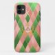 Capa Para iPhone 11 Posh Chic Pink and Green Argyle Monogrammed
