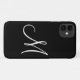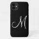 Um simples guião branco-quic inicial na capa de telefone preta. Estilo moderno e minimalista.