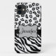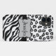 Desfrute deste cobrir de capas de iphone na moda personalizado com seu nome ou iniciais de monograma. As listras de zebra coloridas e as peles-leopardo para design gráfico são uma das tendências mais quentes da arte e do design, e são extremamente populares da moda à decoração doméstica. Essa sofisticada coleção de impressão preto e branco com zebra cinza e guepardo é uma das várias combinações de cores disponíveis. Um emblema de cinza cria uma área de personalização na sua capa de telefone inteligente. Isso é totalmente personalizável para personalizar e incluir seu nome, iniciais de monograma, nome comercial ou outras palavras para transmitir sua mensagem. Vai à loucura com estas designs de pele selvagem!