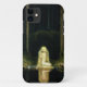 Princesa Tuvstarr com cabelos longos, loiros e ondulantes sentados na floresta, olhando para baixo para seu reflexo nas águas escuras. Linda aquarela de John Bauer. Ilustração para o conto folclórico sueco "A história de Skutt, a alce e a pequena Princesa Tuvstarr", escrito por Helge Kjellin em 1913.