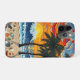Beach art phone case. An impasto oil painting style ai illustration of a beach full of palm trees, sea glass, sea shells and ocean waves at sunset. A bright colorful mesh of colors make this coastal art vibrant and beautiful!