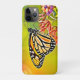 Capa Para iPhone 11 Pro Borboleta Laranja na Design do Flor Rosa
