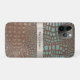 Capa Para iPhone 11 Pro Couro Digital Réptil Castanho Teto Metal Titânio