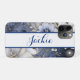 Padrão floral azul escuro bonito iPhone X Case personalizado com seu nome. Altere o nome quando você solicitar.
