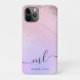 design de capas de iphone personalizada e elegante, com cor rosa-claro, mármore de ouro brilhante e textura púrpura pastel. Personalize o produto com suas iniciais e seu nome.