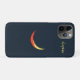 Minimalist night-sky design featuring a glowing golden crescent moon with soft orange accents against a deep navy starry background. This elegant iPhone case captures the calm beauty of the night and adds a touch of celestial charm to your phone.