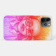 A colorful phone case featuring an artistic sketch of a young girl with large glasses and curly hair. She is adjusting her glasses with one hand and has a gentle smile. The drawing is shaded with a gradient of warm red, orange, pink, and purple hues, giving it a vibrant and playful feel.Girk