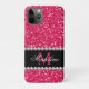 Cevon brilhante cor-de-rosa com gema de diamante, caixa móvel que pode ser personalizada com seu nome e monograma, caso iPhone 11 Pro. Design por Caroline Leskiw