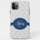 Proteja o seu iPhone com uma capas de iphone personalizada de formato azul. O design de gabinete apresenta um simples fundo quatrefoil e um emblema de rico para personalizar com seu nome e monograma. Itens adicionais disponíveis com este design também. Entre em contato comigo diretamente para obter assistência com a personalização.