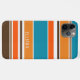 Mantenha seu novo dispositivo eletrônico protegido contra algemas e arranhões com essa capa de telefone protetora de células padrão de listras listradas de cor branca, amarelo ensolarado, laranja, azul lacrimogêneo, castanho escuro e branco. Com espaço para personalizar com um nome, monograma ou iniciais de sua escolha. Belo, moderno e legal cobrir para o motif motif do motif, experiente e apaixonante da arte, vintage retro look style amante que quer proteger seu telefone de poeira e sujeira, visto e lágrimas. Este design está disponível no Apple iPhone 6, 7 e 8 Plus, 10 ou X, XR, XS, 11, 12 e 13 Mini, 14, 15 Plus e no Pro Max Max Celphone capas. Mostre seu estilo, olhe a moda da moda e sinta na moda com um design único em um acessório de dispositivo móvel de sua escolha.