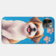 Cachorro adorável, estilo cartoon, com uma expressão amistosa e feliz. O cão tem uma casaco fluffy que combina cores brancas e castanho claro, e tem olhos grandes e expressivos. Sua boca está aberta num sorriso alegre, transmitindo um senso de alegria.