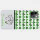 Esta design apresenta um padrão de lamaçais verdes e um cavalo com ferradura.