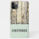 Esta capas de iphone case-Mate tem um espaço personalizável onde você pode adicionar seu nome, iniciais ou qualquer outro texto. O plano de fundo apresenta um falso efeito rústico da madeira, fazer uma maneira excelente de mostrar seu estilo pessoal e fazer seu telefone se destacar. As cores são cinzas, creme e verde-claro.