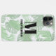 Este design apresenta um monograma inicial simples, uma folhagem botânica das palmeiras, uma letra personalizada personalizada, uma folha verde de cor aquática, um sol da praia tropical de virada para o na moda, uma mala de acessórios para smartphones para iPhone, um moderno moderno moderno moderno sofisticado, um padrão botânico da selva, um design elegante elegante simplista, um resistente e protetor capa de telefone