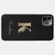 A capa de telefone preta elegante apresenta um monograma botânico dourado no centro.