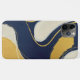 Esta é uma pintura abstrato moderna caracterizada por uma paleta colorida ousada e sofisticada de azul marinho profundo, branco cremoso e ouro metálico rico. A composição apresenta formas orgânicas e fluentes que se cruzam e giram através da canvas quadrada, criando um sentido dinâmico de movimento. Linhas de ouro finas e elegantes traem caminhos lisos e curvilíneos sobre os blocos de cores principais, adicionando uma camada luxuosa e refinada. A textura é visível, sugerindo o uso de tinta acrílica ou de óleo na canvas com ligeiros impactos nas áreas mais espessas. O humor geral é de elegância chica e simplicidade moderna, perfeito para o design interior contemporâneo.