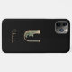 A capa de telefone preta elegante apresenta um monograma botânico dourado no centro.