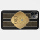 Este caso clássico é perfeito para uma aparência profissional quando você está em movimento. Este design apresenta um padrão dourado e preto pontilhado e listrado com uma crista dourada e falsa de diamante. Personalize com um monograma de três letras logo abaixo da decoração do ouro.