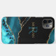 Capa Para iPhone 11 Pro Max Nome & Monograma de Agato Preto Teal, Texto DkTeal