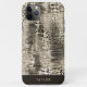 Um padrão exótico de snakeskin em tons neutros de cinza castanho, bege, esbranquiçado, carvões e preto faz este pop design com estilo inspirado na natureza. Uma banda de coordenação de cores na parte inferior da design tem um modelo de texto para personalizar com seu nome, iniciais de monograma ou outro texto desejado. Você também pode excluir o texto de amostra se preferir o caso sem qualquer texto.
