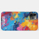 Como se lembra de uma pintura Jackson Pollack, essa capa de telefone apresenta pintura espalhada em tons de azul, amarelo e laranja, com manchas de rosa. Muito moderno e impressionante!